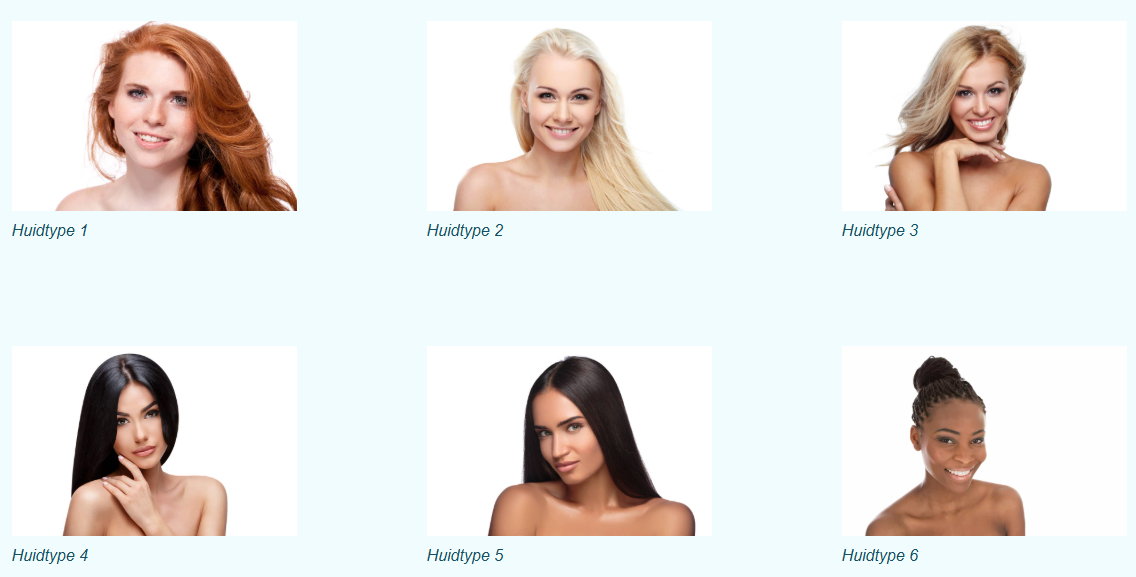 - Type I (zeer licht, vaak rood haar, altijd verbrand): SPF 50+